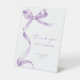 Lavender Bow "Thanks For Coming" Sign – Express your gratitude with this elegant "Thanks for Coming" sign featuring a delicate purple bow design. Perfect for baby showers, bridal showers, or sweet 16 parties, this sign adds a sweet and stylish touch to your decor while warmly thanking your guests.