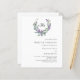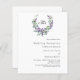 A white background decorated with a lavender flower and eucalyptus greenery wreath, crest. Personalise and your monogram, names and details.