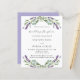A white background decorated with lavender flowers and eucalyptus greenery. Personalise and your names and details.