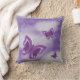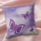 This pretty pillow features three purple, lavender, and violet coloured butterfly images against a cloudy grunge matching background. The other side of the pillow has the background, but not the butterflies. It makes an interesting reversible pillow, and is especially suited for a little girl's bedroom.