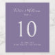 Chic and elegant wedding wine label for use as a table number, features a contemporary set of ivory fonts, against a voilet lavender background. The design embues modern elegance in a minimalist style, matching other items in the full wedding suite.