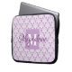 This beautiful laptop case features a classic white damask pattern over a lavender or dusty purple background. The design is personalised with a monogram initial letter as well as a customisable name for a simple yet elegant case. Perfect for any woman who wants a pretty feminine laptop case.