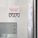 It was a bit smaller than expected, but I was too excited to check dimensions. The product itself send well printed though the grey text is a bit paint. Magnet worked perfectly on my fridge.