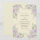 Delicate watercolor blossoms in soft lavender hues cascade across a pale, creamy background. Verdant green foliage adds depth and a touch of nature's beauty. This design evokes a gentle, romantic atmosphere, perfect for a spring or summer union.