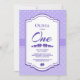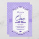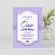 Invite your friends and loved ones with this lavender and white elephant, polka dots and chevron striped 1st birthday invitation.