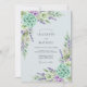 This design features a soft watercolor palette of lavender purple and mint green set against a pale blue backdrop. Delicate sprigs of lavender and lush hydrangea clusters create a serene and romantic atmosphere. Elegant greenery and botanical foliage wrap around the composition, evoking a fresh and airy feel for a seasonal event.