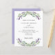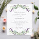 An invitation for the evening. A white background decorated with lavender flowers and eucalyptus greenery. Personalise and your names and details.