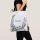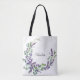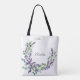 White background, decorated with lavender flowers and eucalyptus greenery.