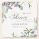 Lavender Eucalyptus Leafy Foliage Bridal Shower Square Paper Coaster