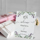 A chic white background. Decorated with lavender florals, flowers and eucalyptus greenery. Personalise and add your monogram initials, names and the wedding date.