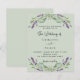 A sage green background decorated with lavender flowers and eucalyptus greenery. Personalise and your names and details.