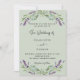 A sage green background decorated with lavender flowers and eucalyptus greenery. Personalise and your names and details.