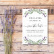 A modern and elegant Save the Date for a wedding. A white background decorated with lavender flowers and eucalyptus greenery. Personalise and add a date and your names. The text: Save the Date is written with a large trendy hand lettered style script.