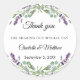 Seal your wedding favors with this elegant lavender thank you sticker. The design features a delicate watercolor wreath of purple lavender sprigs and soft green eucalyptus foliage. These labels are perfect for late summer or fall weddings following a rustic garden theme.