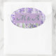 These oval stickers with soft lavender and green inspired by the beauty of countryside lavender flowers have a location for custom initials for your wedding celebration.
