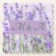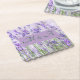 These scalloped paper coasters with soft lavender and green inspired by the beauty of countryside lavender flowers have a location for custom names for your wedding celebration.