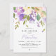 Lavender floral baby shower invitation in a minimalist style with a lavender purple flower bouquet and pattern back. You can personalise this invitation with your own details under the "Personalise this template" section.