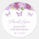 Thank you stickers for any event (shown here for a birthday party but all of the text fields are customisable). The design features lavender watercolor flowers, accompanied by purple butterflies.