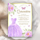 Lavender Floral Dress Butterfly Gold Quinceanera Invitation