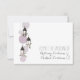 A wedding rsvp featuring an illustration of a group of lavender garden lanterns and lanterns filled with flower arrangements. Personalise the text on front and back.