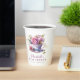 Celebrate the mummy-to-be with these elegant and minimalist baby tea party baby shower paper cups. These gold accented lavender and shades of pink paper cups feature watercolor tea cup and floral artwork with lacy gold butterflies. Customise these cups with your own details.