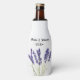 Lavender, purple flowers, watercolor painting beer bottle cooler. Summer floral design. Perfect For Wedding favours. Personalise it with your names and date.