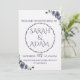 This elegant wedding invitation features romantic watercolor lavender roses and soft greenery. The clean layout and sophisticated serif typography make it perfect for a modern garden or spring wedding. Easily customize the text to share your special details with friends and family.