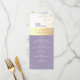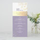 Vintage, botanical, rustic, calligraphy, modern, elegant dusty purple lavender wedding menu with gilded gold and silver floral lace.