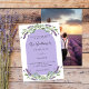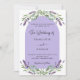 A white background decorated with lavender flowers, eucalyptus greenery and an arch frame. Personalise and your names and details.