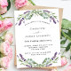 A white background decorated with lavender flowers and eucalyptus greenery. Personalise and your names and details.