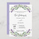 A white background decorated with lavender flowers and eucalyptus greenery. Personalise and your names and details.
