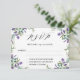 A RSVP card decorated with lavender flowers and greenery. White background. Personalise and add the reply by date.