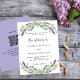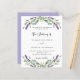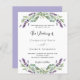 A white background decorated with lavender flowers and eucalyptus greenery. Personalise and your names and details.