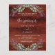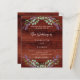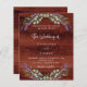 Rustic brown wood as background decorated with lavender flowers and eucalyptus greenery. Personalise and your names and details.