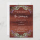 Rustic brown wood as background decorated with lavender flowers and eucalyptus greenery. Personalise and your names and details.