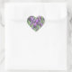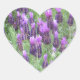Heart sticker with photo of purple lavender (Lavandula) flowers above green foliage
