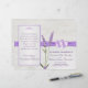 Purple lavender flowers and hearts on light wooden planks background Wedding Program. Purple ribbon is the printed image. You can adjust text according to your requirements.