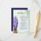 This watercolor wedding details enclosure card features a vase full of beautiful lavender flower stalks. They are set against a pastel sage green and lavender mix background. The text and back are a dark lavender.