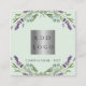 A soft green background decorated with lavender flowers and eucalyptus greenery. Personalise and add your business logo and text on front.