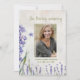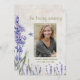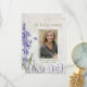 This beautiful funeral floral Thank You card featuring purple lavender flowers and twigs, a photo of your loved one, their name and dates of life.