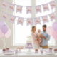 Add a touch of sweetness to your celebration with these lavender gingham bunting flags, decorated with adorable watercolor baby toys — teddy bears, bunnies, and stacking blocks. Perfect for a 1st birthday or baby party, this soft pastel design brings a cozy, handmade charm to your décor. Hang it across the wall, dessert table, or photo area for a cheerful and heartwarming accent.