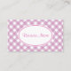 A bright lavender gingham pattern decorates this professional business card. Customise this modern business card to suit your needs. Change the text, font size, etc... Add or delete text. The design is from original art. Use this professional business card for a boutique, bakery, gourmet foods, event planner, bakery, florist, cosmetologist, appointments, hair stylist, salon, home decor, interior design, daycare, child care, preschool, etc...