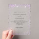 An invitation for the evening. A transparent background decorated with lavender glitter, sparkles. Personalize and your names and details.