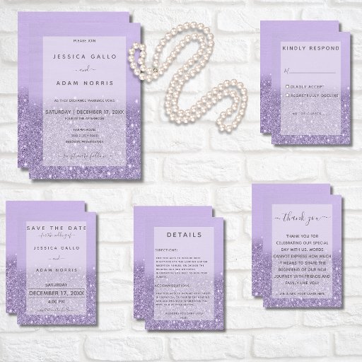 Lavender Glitter Modern Wedding Suite CardsDesigned by Kathe Santillo