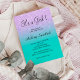A modern, original and simple faux purple lavender glitter ombre on turquoise It's a girl baby shower invitation . A mermaid, cool girly style!