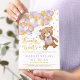 This adorable teddy bear themed invitation is sure to put a smile on your guests' faces! The soft purple, gold, brown & beige colour scheme makes this design perfect for a girl baby shower. Personalise the invite with your details and if you want to further re-arrange the style and placement of the text, please press the "Click to customise further" button.