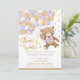 Lavender Gold Brown Teddy Bear Girl Baby Shower Invitation