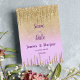 A lavender handwritten script calligraphy modern typography with lavender and gold glitter drips ombre luxury wedding Save the Date invitations. This elegant monogram design is ideal for a trendy and stylish party event. Customise this design with your message and personalised information. All designs are printed.