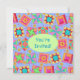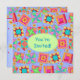Invite a quilter or quilt lover with this colourful fully customisable square quilt invitation. Fully customise on the front and back to add your own words, names and other information. This original quilt art makes a vibrant invitation. Quilt art based on original art features favourite patchwork quilt blocks plus unique blocks in vibrant and dynamic colours of orange, yellow, pink, turquoise, and lime green on a periwinkle lavender background for a beautiful colour palette. A lime green oval is on the front of the card to say "You're Invited" or other words of your choice. Show your love of quilting with these quilt art designs with other quilt art products. Quilt art is original art from fabric and quilt designer Phyllis Dobbs and is in a fabric collection from Quilting Treasures. This art is available on other products and in several colour backgrounds. More products are available in Phyllis' BusinesswithFlair store. Match with coordinating stamps, envelopes, stickers and return address labels.