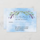 A white and blue summer sky as background, black text. Decorated with lavender florals and eucalyptus greenery. Personalise and add a reply by date.